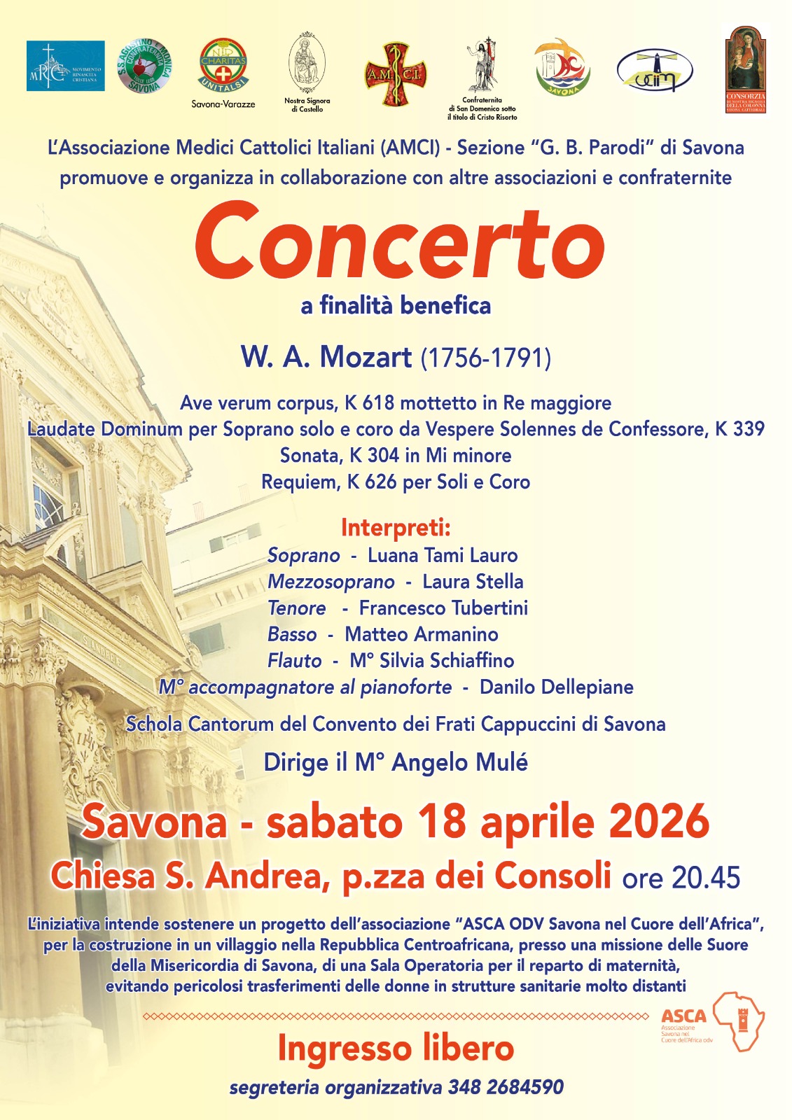Il Concerto si terrà Sabato 18 Aprile 2026 a Savona presso la Chiesa Sant’Andrea, Piazza dei Consoli alle ore 20:45